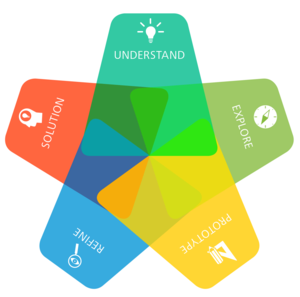 Solution is the final and last phase in the process. By this point, you’ve practiced each of the previous steps, invested lots of time in your design challenge, understand the importance of presenting your work well and engaging with your audience, and rehearsed and revised your presentation several times. You’ve also applied Design Thinking to multiple disciplines and seen how the approach can be applied to a variety of challenges and situations.