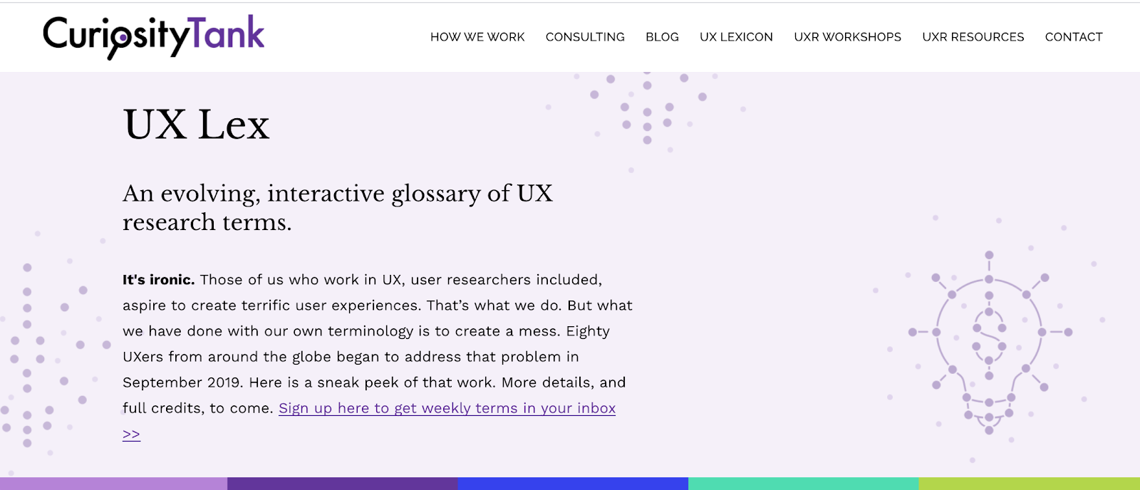 Check out the format and the first 26 terms at https://www.curiositytank.com/ux-lexicon. Please send feedback and suggestions to uxlex@curiositytank.com.