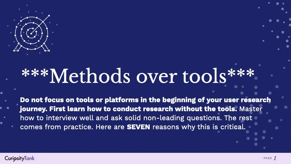 4. FAMILIARITY: When you master a few tools before building a solid UX research foundation you'll wind up trying to shove every study into the tools you know (because you won’t know any better)